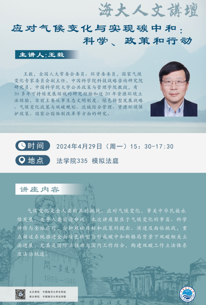 海大人文講壇2024年第17講-王毅:應對氣候變化與實現碳中和:科學、政策和行動