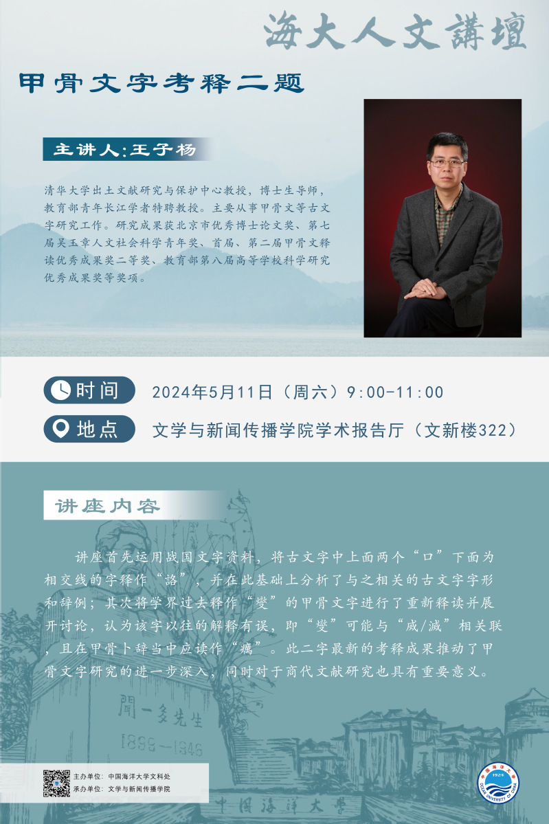 海大人文講壇2024年第28講-王子楊:甲骨文字考釋二題