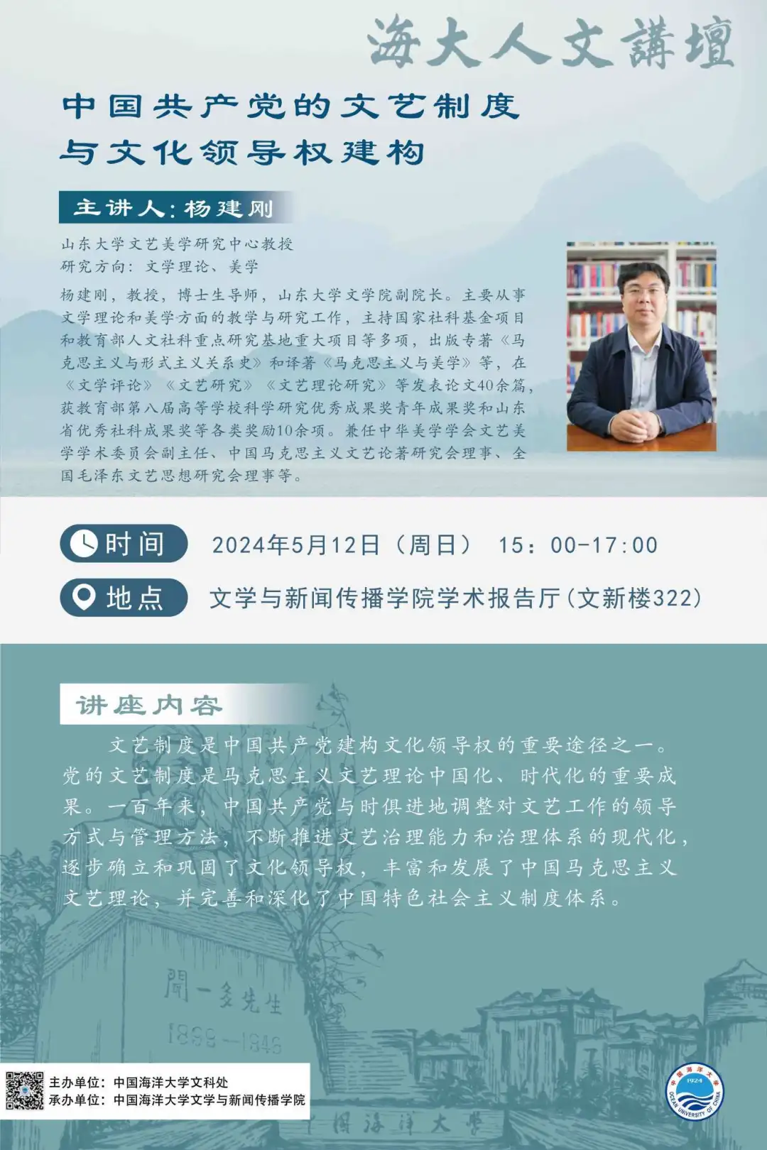 海大人文講壇2024年第29講-楊建剛:中國共產黨的文藝制度與文化領導權建構