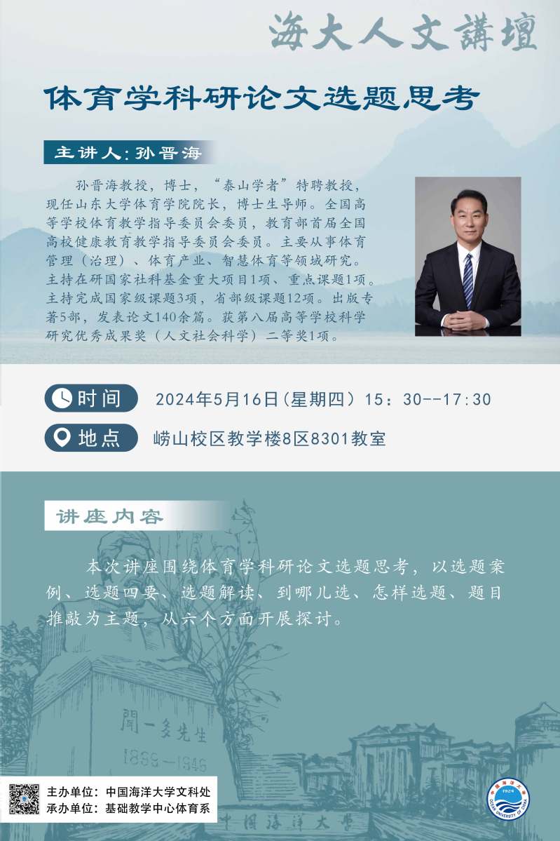 海大人文講壇2024年第35講-孫晉海:體育學(xué)科研論文選題思考