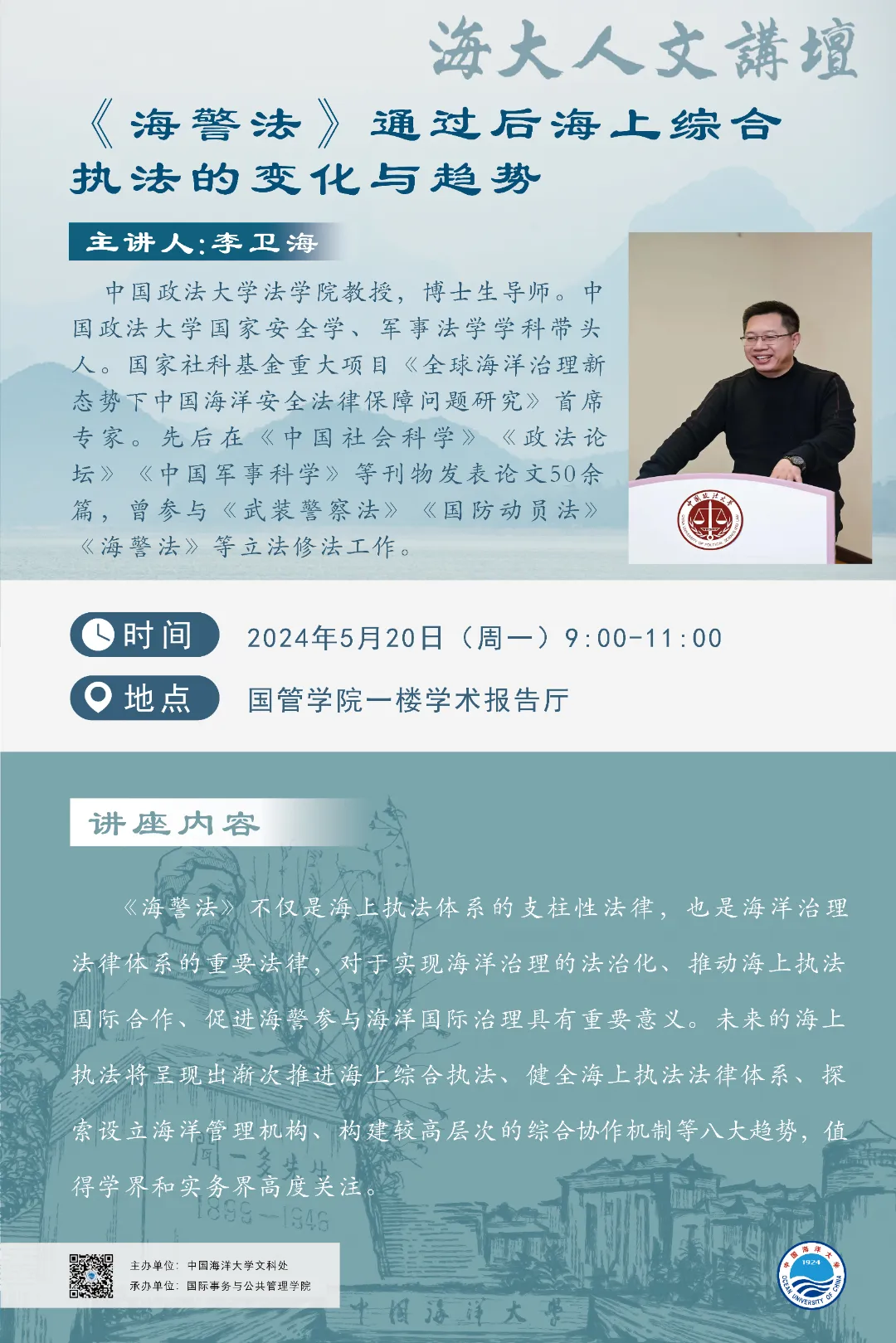 海大人文講壇2024年第37講-李衛海:《海警法》通過后海上綜合執法的變化與趨勢