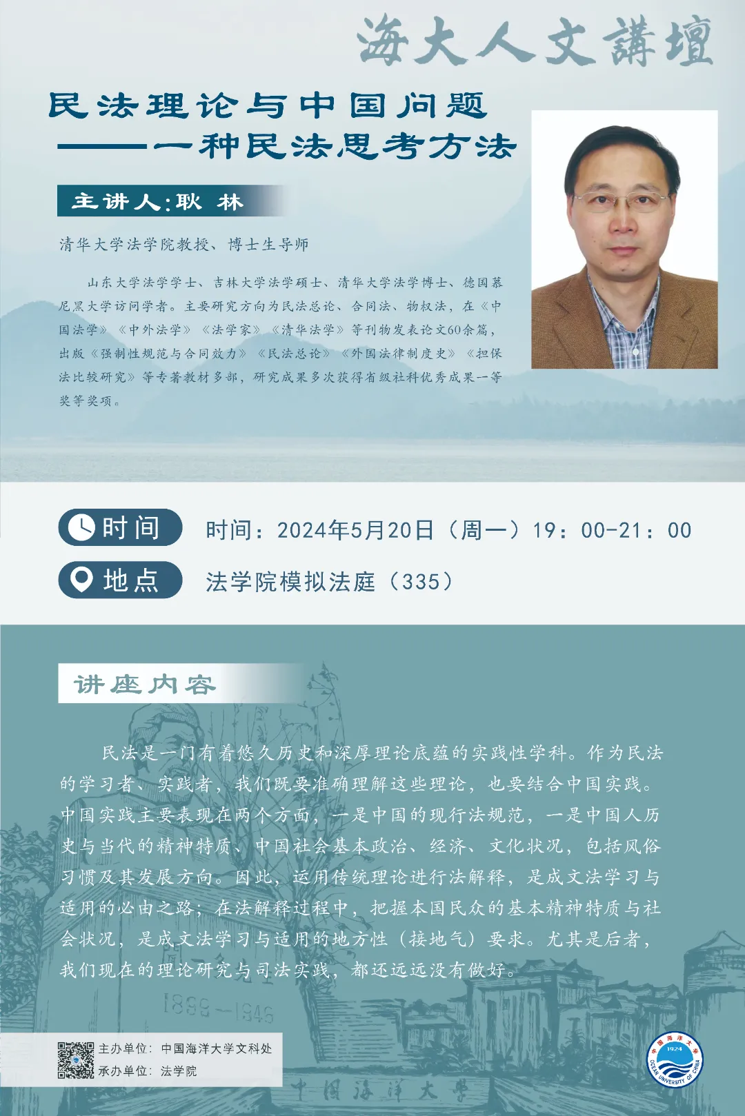 海大人文講壇2024年第38講-耿林:民法理論與中國問題——一種民法思考方法