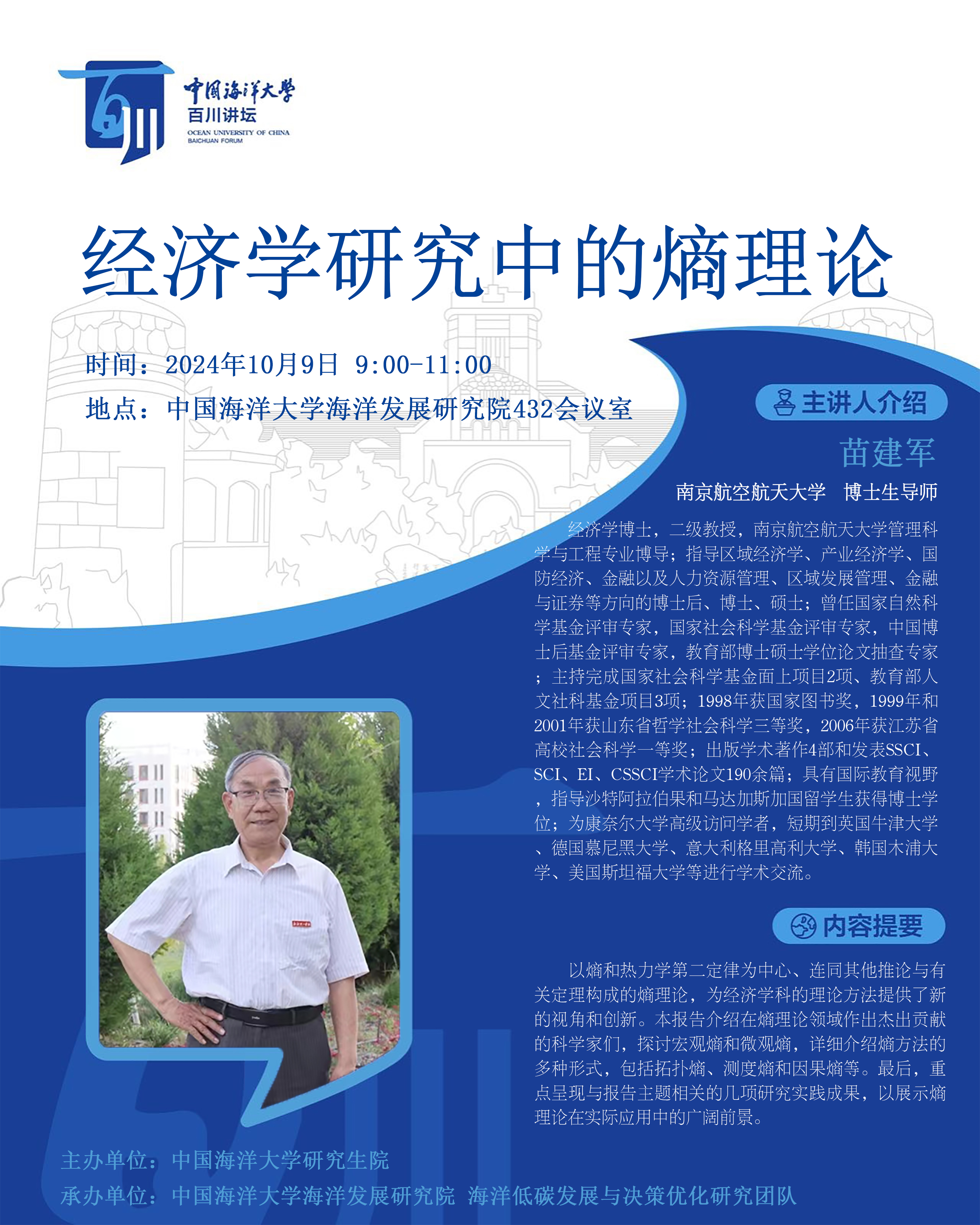研究生百川講壇第374講-苗建軍:經(jīng)濟學研究中的熵理論