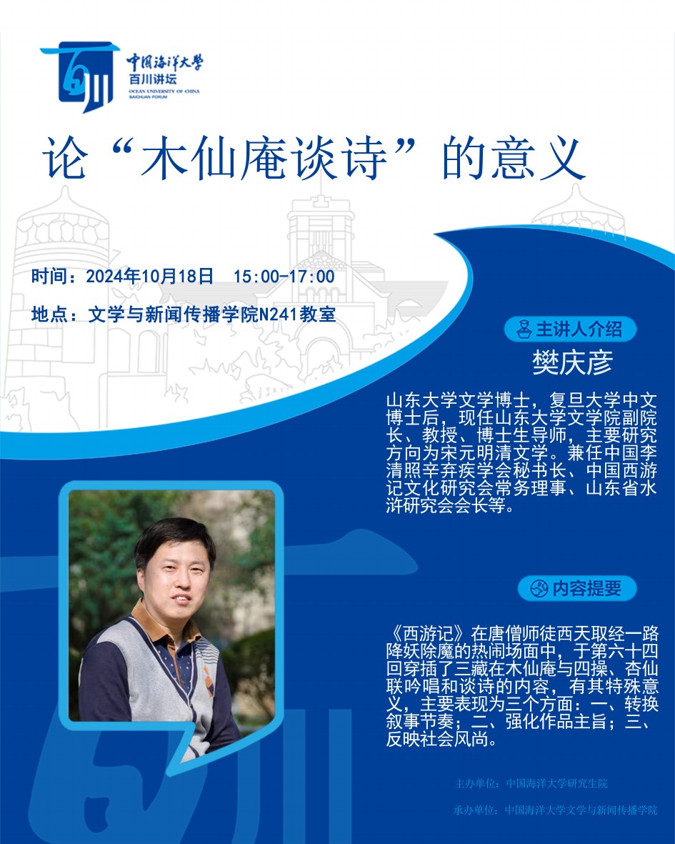 研究生百川講壇第380講-樊慶彥:論“木仙庵談詩”的意義
