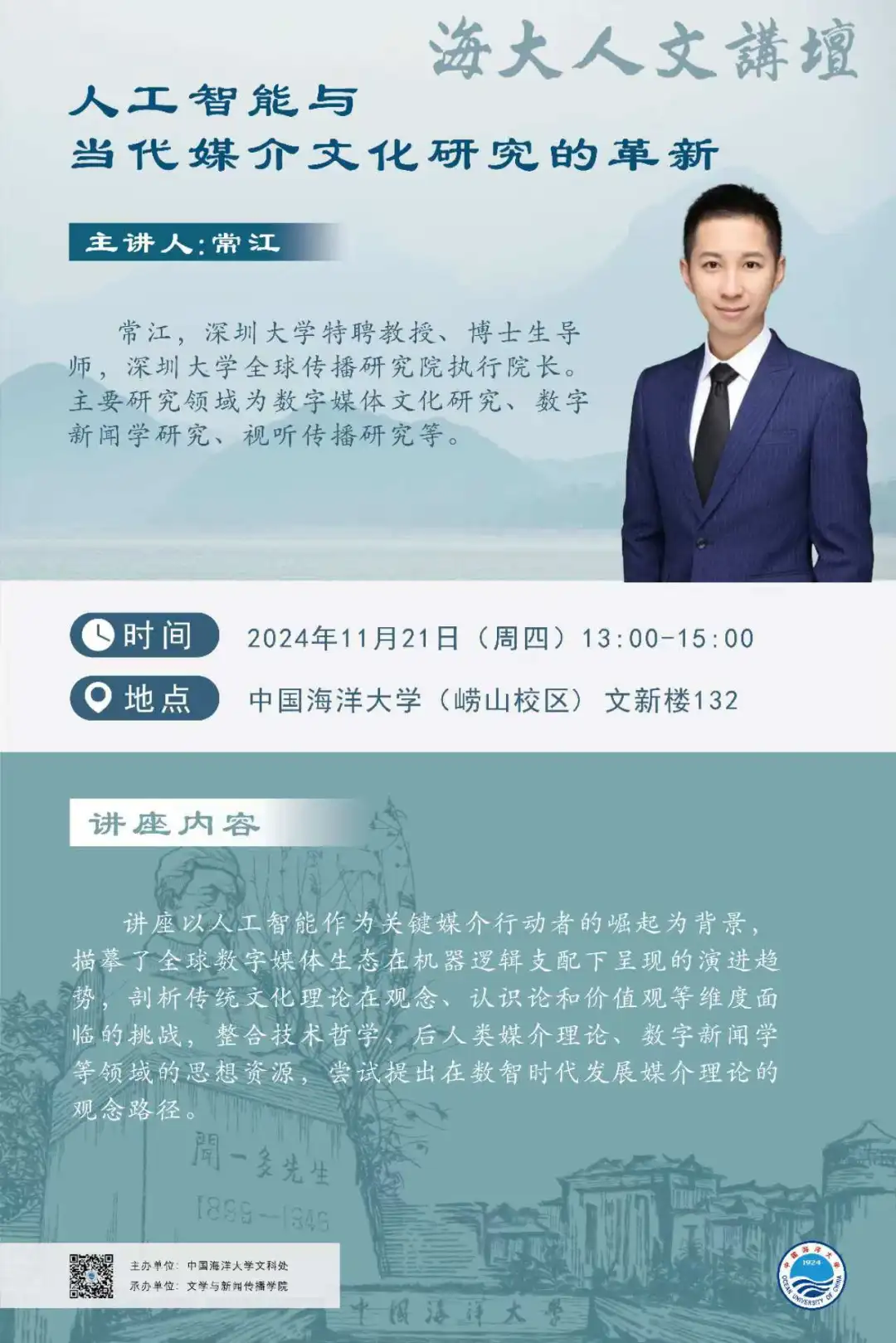 海大人文講壇2024年第88講-常江:人工智能與當代媒介文化研究的革新