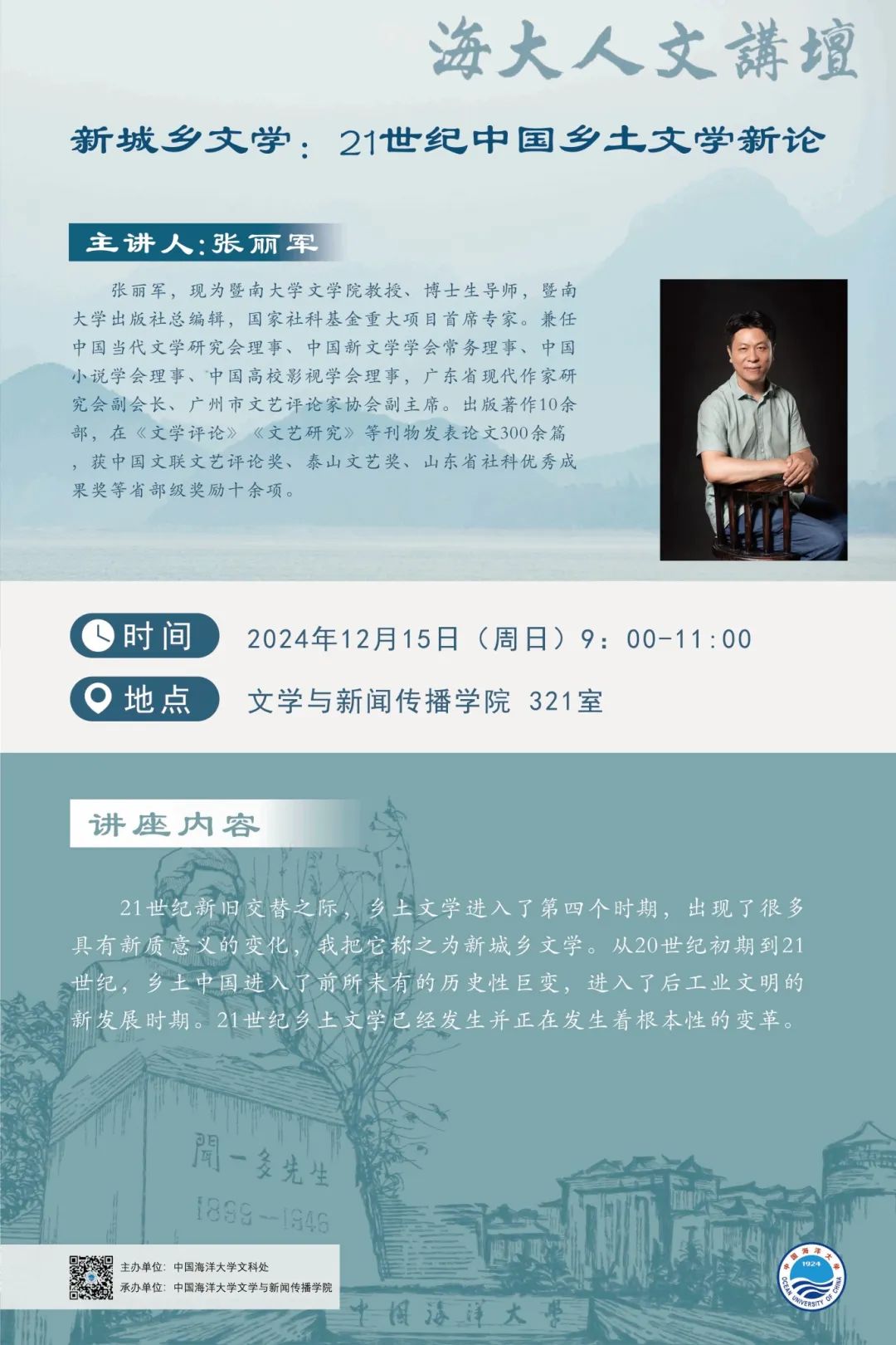 海大人文講壇2024年第98講-張麗軍:新城鄉文學:21世紀中國鄉土文學新論
