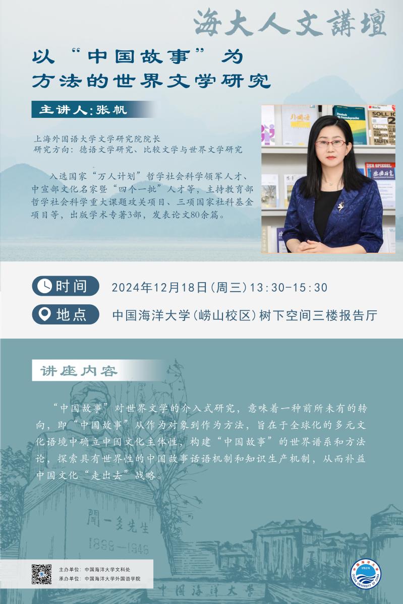 海大人文講壇2024年第99講-張帆:以“中國故事”為方法的世界文學研究