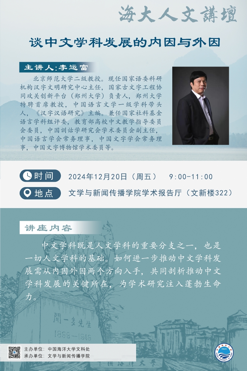 海大人文講壇2024年第101講-李運富:談中文學科發(fā)展的內(nèi)因與外因