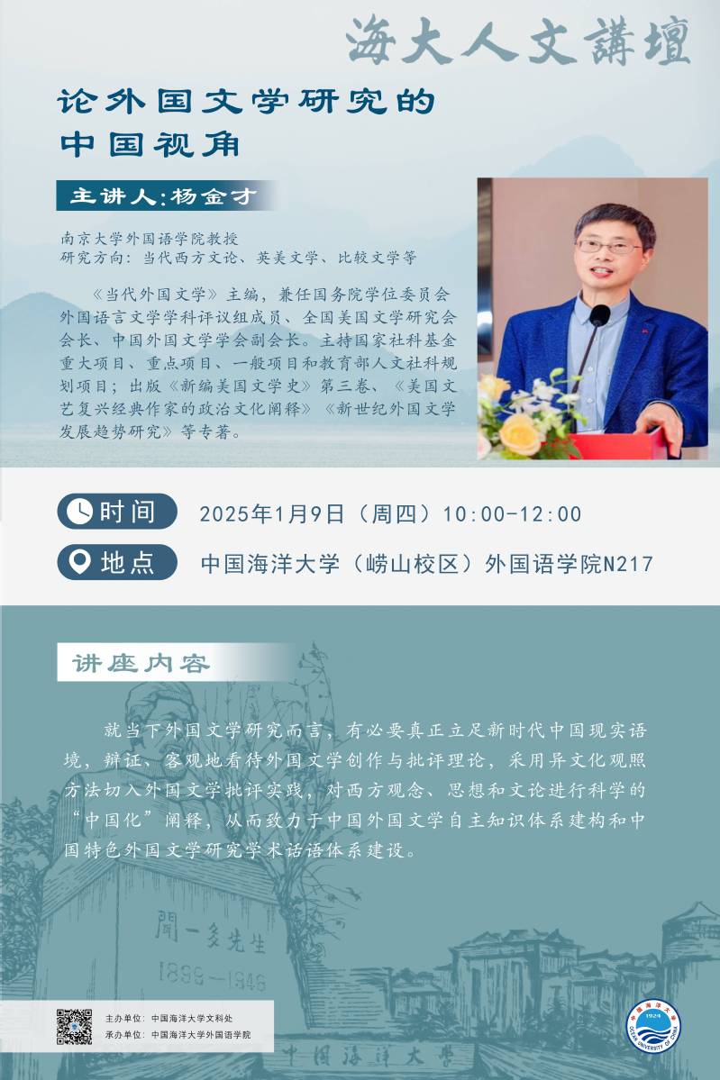 海大人文講壇2025年第2講-楊金才:論外國文學(xué)研究的中國視角