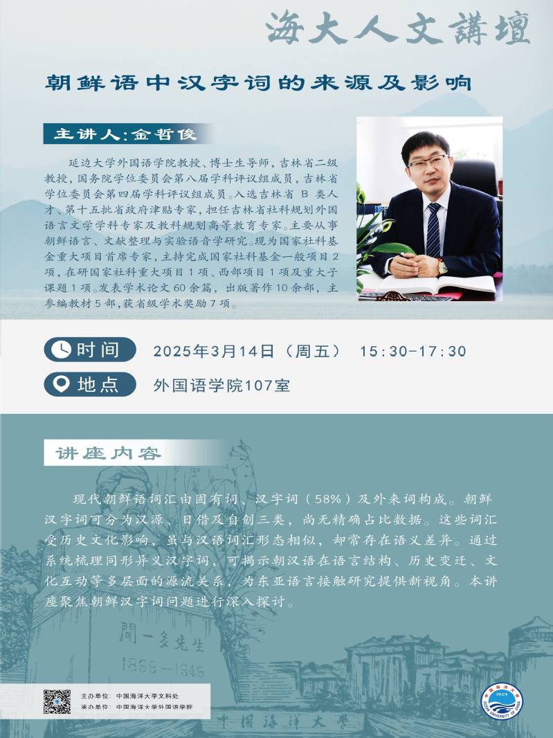 海大人文講壇2025年第6講-金哲俊:朝鮮語中漢字詞的來源及影響