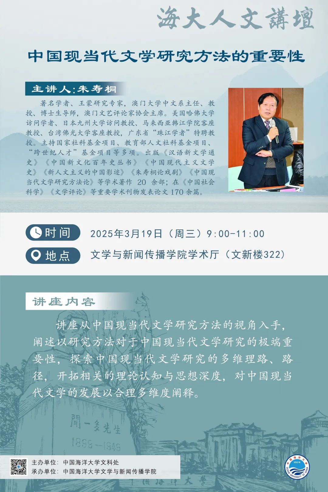海大人文講壇2025年第7講-朱壽桐:中國現(xiàn)當(dāng)代文學(xué)研究方法的重要性