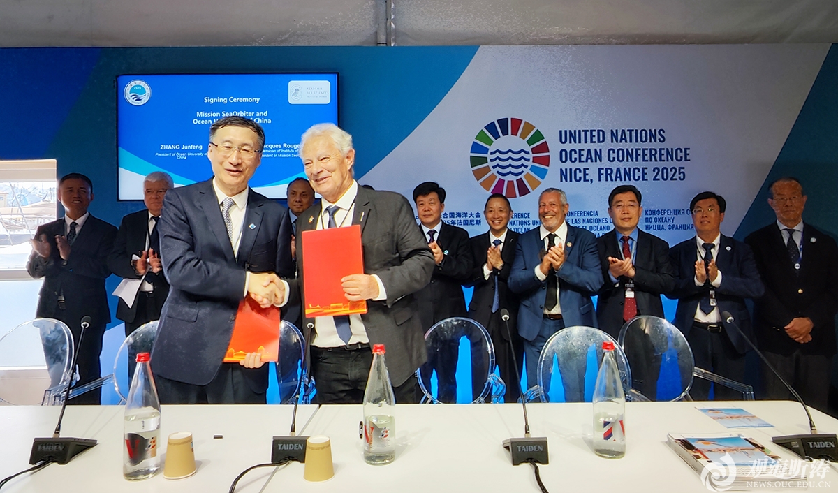 • 本站訊6月7日至12日,中國海洋大學校長張峻峰率團訪問法國、意大利,參加在法國尼斯舉辦的第三屆聯合國海洋大會,與海洋空間站組織聯合舉辦邊會并簽署合作協議,訪問聯合國糧食及農業組織并簽署合作備忘錄。此次訪問有力深化了學校與法國、意大利有關單位的戰略合作,提升了學校的國際影響力,取得了豐碩成果。6月9日,代表團出席第三屆聯合國海洋大會開幕式全體大會,122個國家政府、主要涉海非政府組織、重要學術機構等代表共商全球海洋治理。作為大會正式活動,學校與海洋空間站組織(Mission SeaOrbiter)聯合舉辦“深藍之上”主題邊會,圍繞海洋可持續發展、海洋科技合作等議題展開深入交流。聯合舉辦“深藍之上”主題邊會6月10日,作為共同組織單位,代表團參加了聯合國海洋大會“海洋科學與終端用戶工具包”邊會,中國自然資源部副部長、國家海洋局局長孫書賢,埃及高等教育和科學研究部部長Mohamed Ayman Ashour,法國海事集群創始主席Francis Vallat,聯合國教科文組織政府間海洋學委員會主席Yutaka Michida,國際海底管理局秘書長Leticia Carvalho等出席了會議。孫